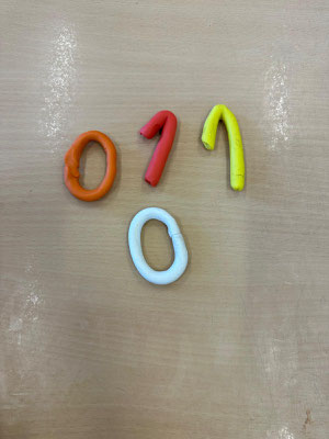 Unsere Erstklässler haben im Matheunterricht bereits die ersten Zahlen kennengelernt! Gemeinsam wurden die Ziffern Null und Eins geknetet.
