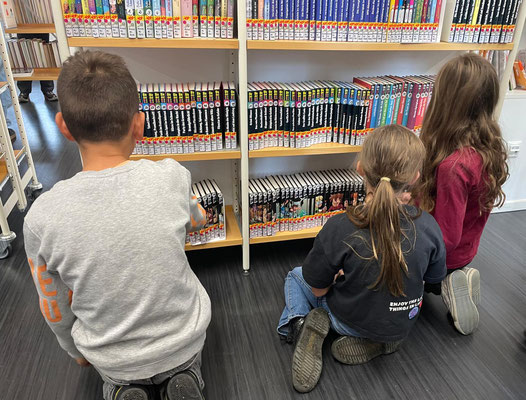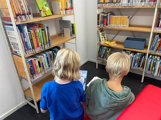 Besuch der Bücherei in Süd…die Kinder lauschen gespannt dem Bilderbuchkino und hatten im Anschluss noch Zeit zu stöbern!